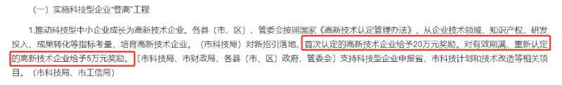 獎勵政策:對新招引落地、首次認定的高新技術(shù)企業(yè)給予20萬(wàn)元獎勵。對有效期滿(mǎn)、重新認定的高新技術(shù)企業(yè)給予5萬(wàn)元獎勵。