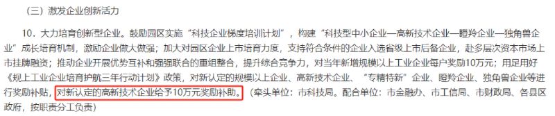 獎勵政策:對新認定的高新技術(shù)企業(yè)給予10萬(wàn)元獎勵補助。