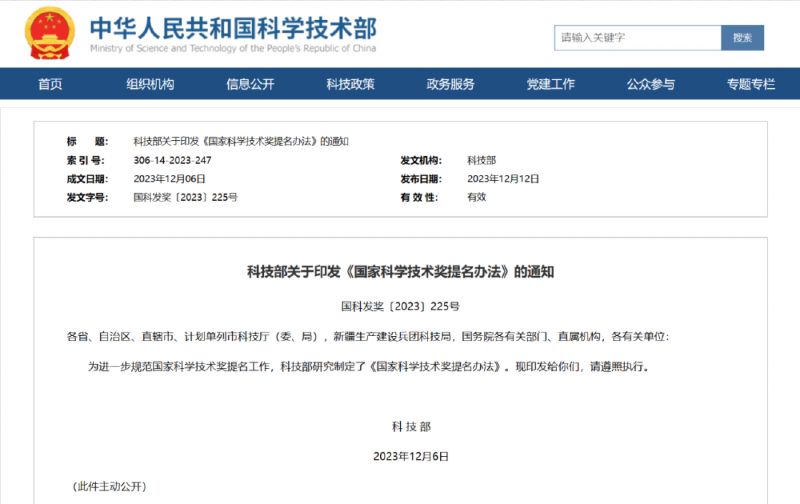 科技獎勵是我國長(cháng)期堅持的激勵科技創(chuàng )新的基礎制度,是國家科技政策、人才政策的重要組成。黨中央高度重視科技獎勵工作。黨的十八大以來(lái),在以習近平同志為核心的黨中央堅強領(lǐng)導下,國家科學(xué)技術(shù)獎納入黨和國家功勛榮譽(yù)表彰制度體系。2017年5月,經(jīng)黨中央、國務(wù)院同意,國務(wù)院辦公廳印發(fā)《關(guān)于深化科技獎勵制度改革的方案》,明確國家科技獎勵由“推薦制”調整為“提名制”。2020年10月,國務(wù)院第三次修訂發(fā)布《國家科學(xué)技術(shù)獎勵條例》,進(jìn)一步落實(shí)了提名制改革要求。