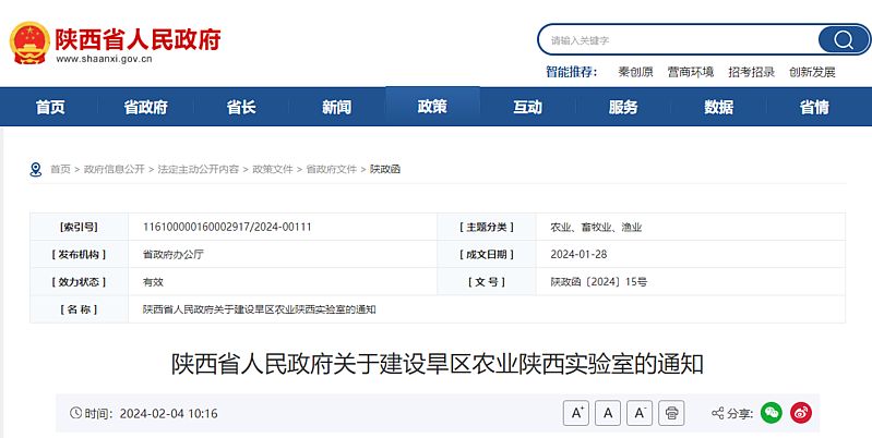 為認真貫徹落實(shí)習近平總書(shū)記關(guān)于科技創(chuàng )新的重要論述和歷次來(lái)陜考察重要講話(huà)重要指示,深入實(shí)施創(chuàng )新驅動(dòng)發(fā)展戰略,加快培育國家戰略科技力量,推動(dòng)科技強省建設,省政府決定建設旱區農業(yè)陜西實(shí)驗室(以下簡(jiǎn)稱(chēng)實(shí)驗室)?,F將有關(guān)事項通知如下。