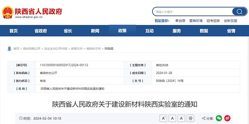 為認真貫徹落實(shí)習近平總書(shū)記關(guān)于科技創(chuàng )新的重要論述和歷次來(lái)陜考察重要講話(huà)重要指示,深入實(shí)施創(chuàng )新驅動(dòng)發(fā)展戰略,加快培育國家戰略科技力量,推動(dòng)科技強省建設,省政府決定建設新材料陜西實(shí)驗室(以下簡(jiǎn)稱(chēng)實(shí)驗室)?,F將有關(guān)事項通知如下。