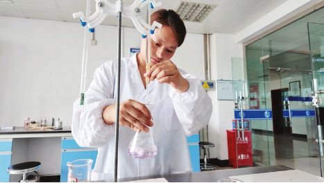 西鳳集團科研中心工作人員在分析酒曲中的成分 王澤坤攝